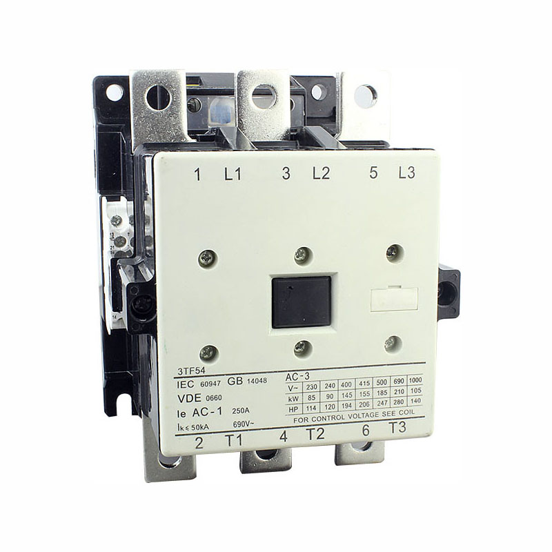 3TF series AC Contactors are suitable in electrical system with AC 50/60Hz, rated operational voltage up to 660V, In AC-3 usage, rated operational voltage up to 380V, rated operational current up to 630A to make or break remote motors or system. They can form electromagnetic starters with suitable thermal overload relays 3UA series to protect system and motors against overload or phase-failure. They are made according to IEC60947-4. The contactor is a straight motion mechanism having double-breaking contacts. The auxiliary contacts are arranged 2NO, 2NC at most. It is employed the flexible locking connection between the contact support and core. There are no arc-isolated panel in the le 22A contactors. In the In 32A contactors, there are moulded arc-chute with arc-isolated panel. Because all contacts are made of high non-fusibility and against corrosion silver alloy. All series products can be mounted by screws, le 32A contactor also by installation rail.